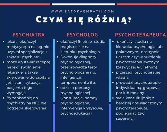 Czym się różnią podobnie brzmiący psychiatra, psycholog, psychoterapeuta: